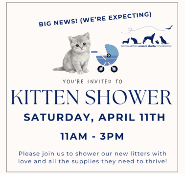 You’re Invited to SASF’s Kitten Shower! Come shower our kitties to be with some love, and donating items off our Amazon Wish List!