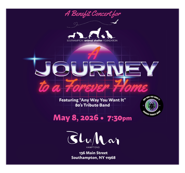 We hope you can join us at Blu Mar in Southampton for a night of legendary music from Journey cover band, Any Way You Want It! All ticket proceeds go directly to benefit SASF and the work we do to care for homeless animals in our community, and beyond. Ticket includes 2 drinks | $55.00 at the […]