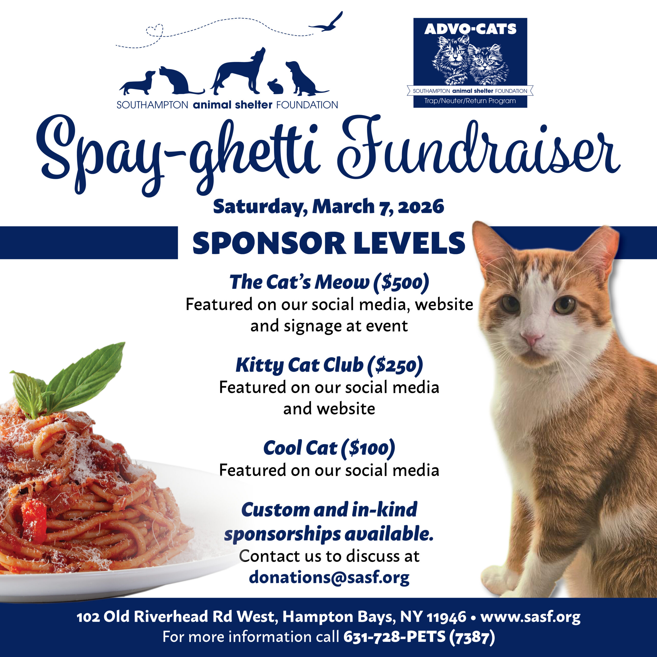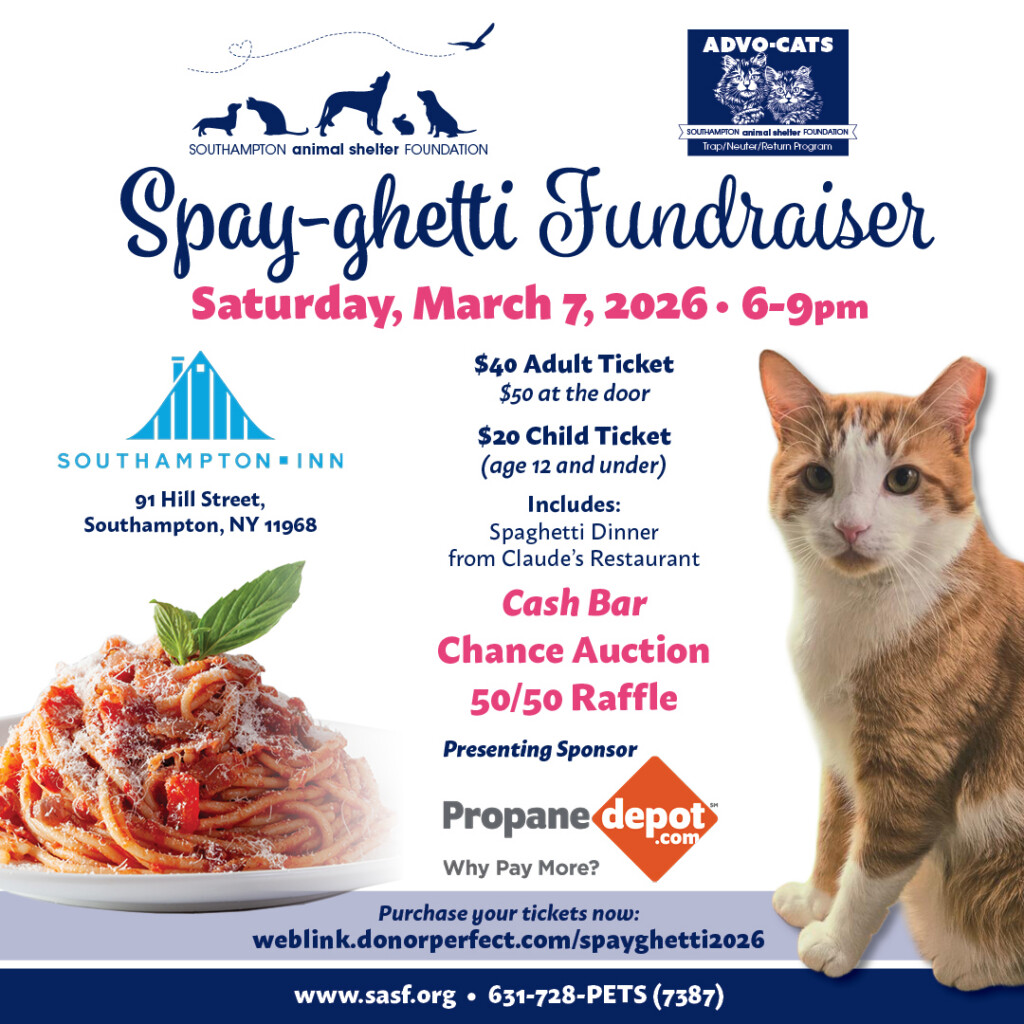 It’s that time of year to raise critical funds for our Advo-Cats Program! Join SASF at the Southampton Inn on March 7th.
