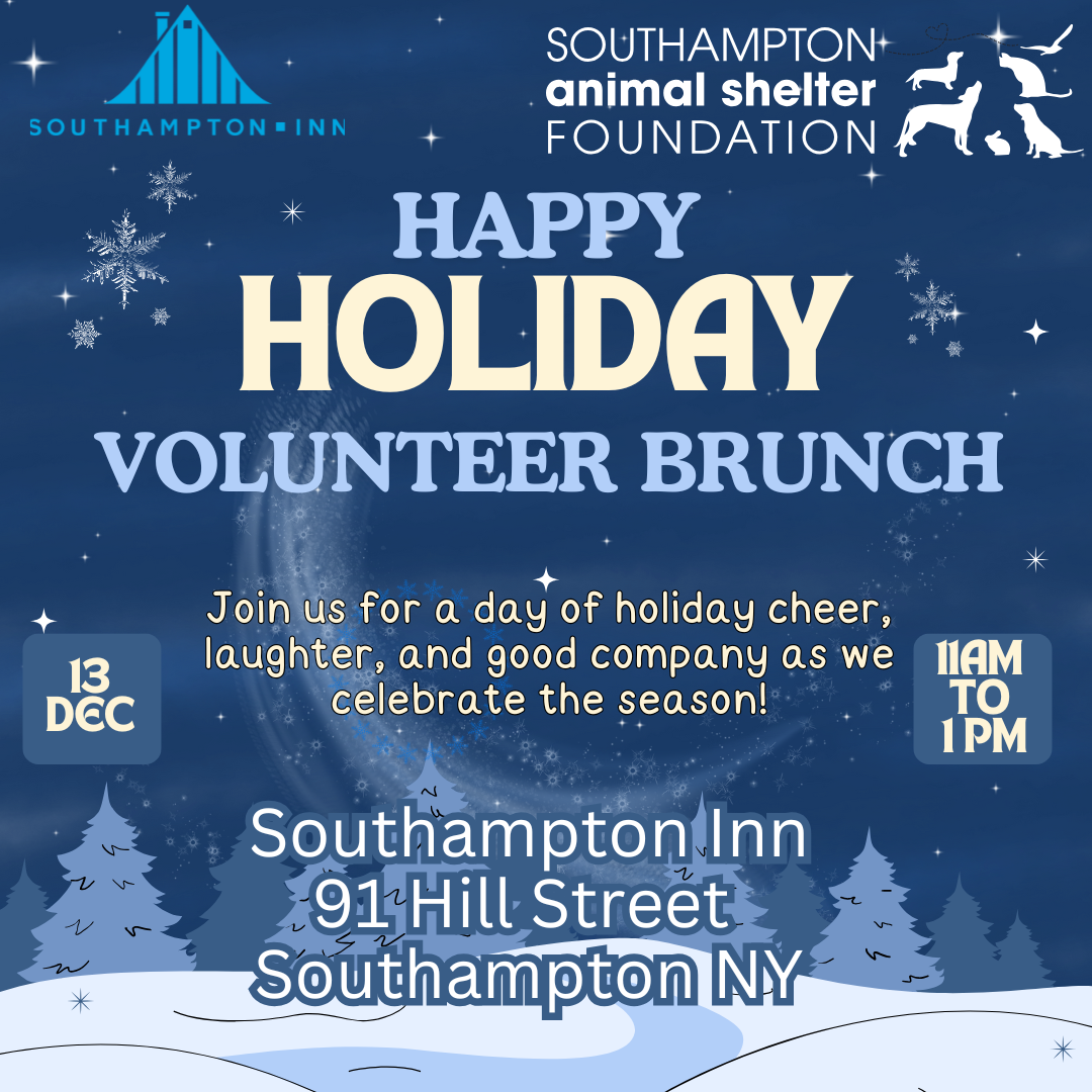 SASF wouldn’t be what it is without our amazing volunteers! Please join us this Saturday at 11am us for a joyful Holiday Brunch at the Southampton Inn as we celebrate the holiday season and this incredible team.